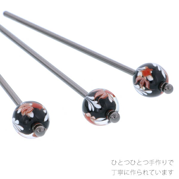 ガラス玉 かんざし「黒×赤色金魚」簪 浴衣髪飾り 髪飾り 浴衣かんざし <H>【メール便不可】ss2006wkk30