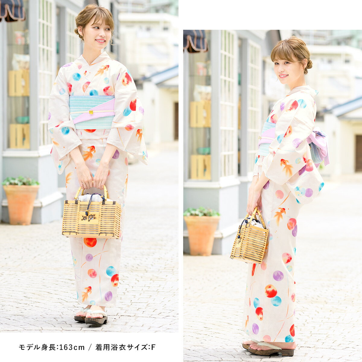 浴衣 セット レディース レトロ 浴衣セット 大人 3点セット 白系 ホワイト 水色 水玉 金魚 綿 女性 ボヌールセゾン S フリー 【送料無料】【あす楽対応】【浴衣 セット】