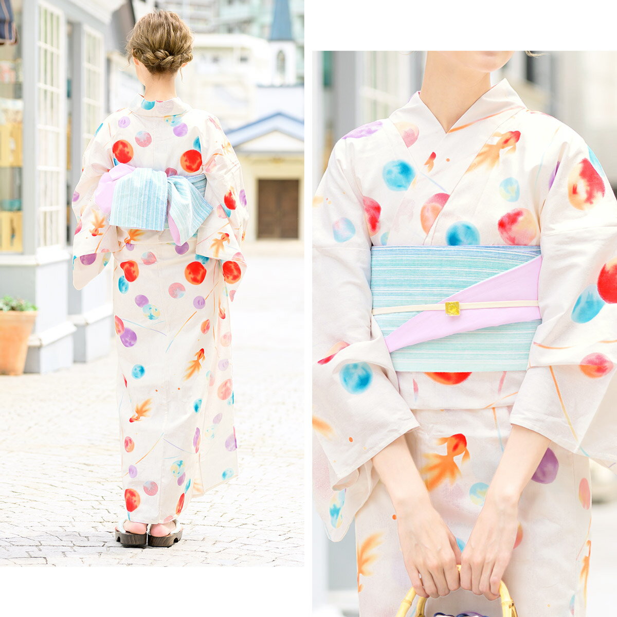 夏のお祭りや花火大会などで、女性らしく美しい着物姿をお楽しみください。