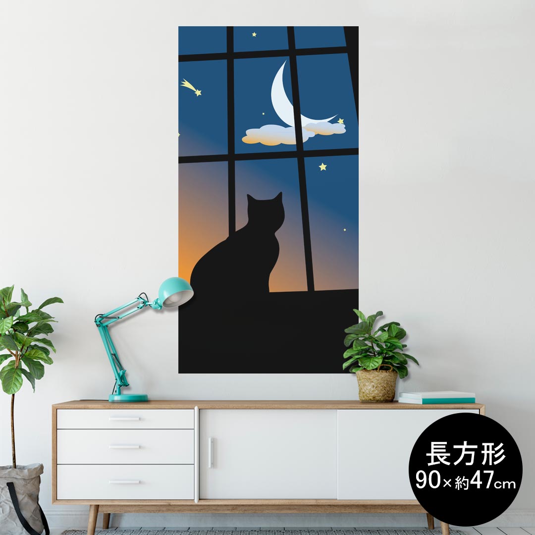 ポスター ウォールステッカー 長方形 シール式ステッカー 飾り 90×47cm Lsize 長方形 壁 インテリア おしゃれ 剥がせる wall sticker poster 001048 猫 三日月