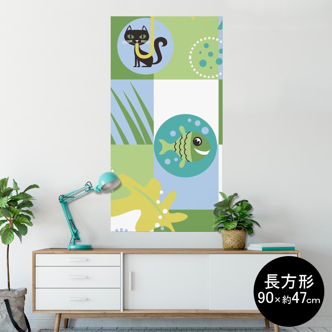 ポスター ウォールステッカー 長方形 シール式ステッカー 飾り 90×47cm Lsize 長方形 壁 インテリア おしゃれ 剥がせる wall sticker poster 004007 猫 海 キャラクター 緑