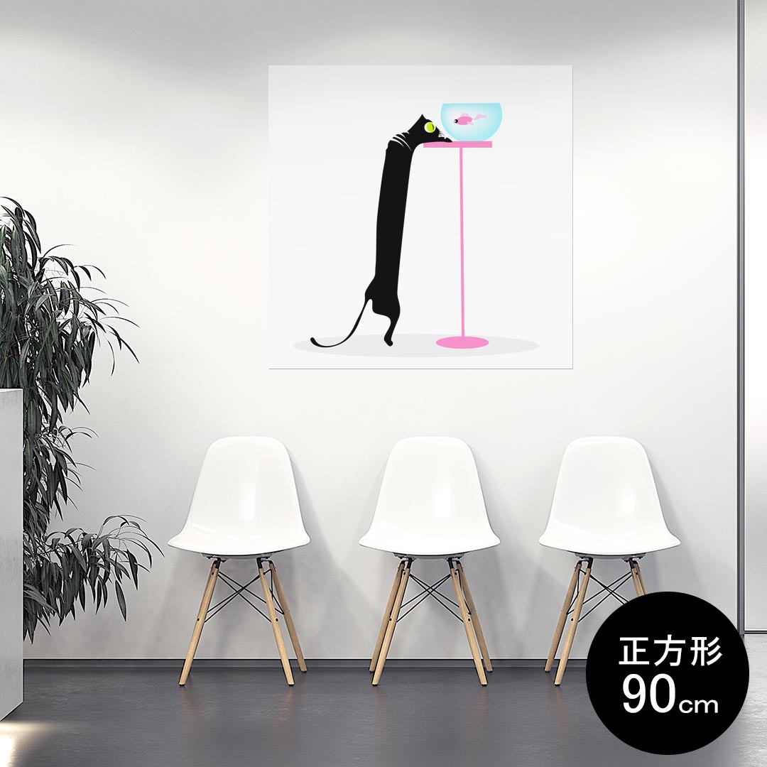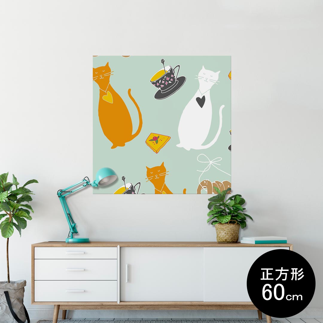 ポスター ウォールステッカー シール式ステッカー 飾り 60×60cm Msize 正方形 壁 インテリア おしゃれ 剥がせる wall sticker poster 001098 猫 イラスト