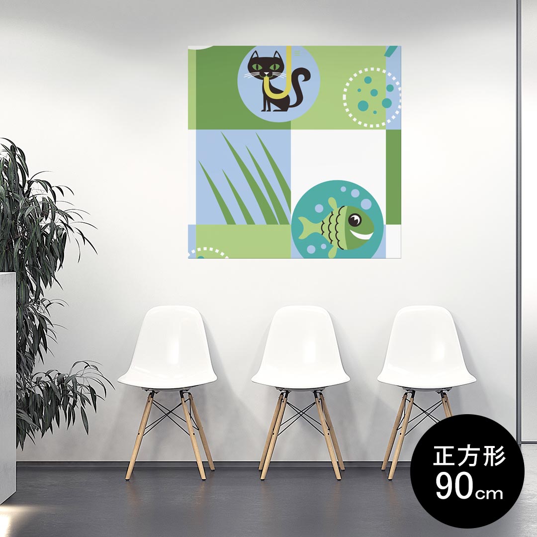 ポスター ウォールステッカー シール式ステッカー 飾り 90×90cm Lsize 正方形 壁 インテリア おしゃれ 剥がせる wall sticker poster 004007 猫 海 キャラクター 緑