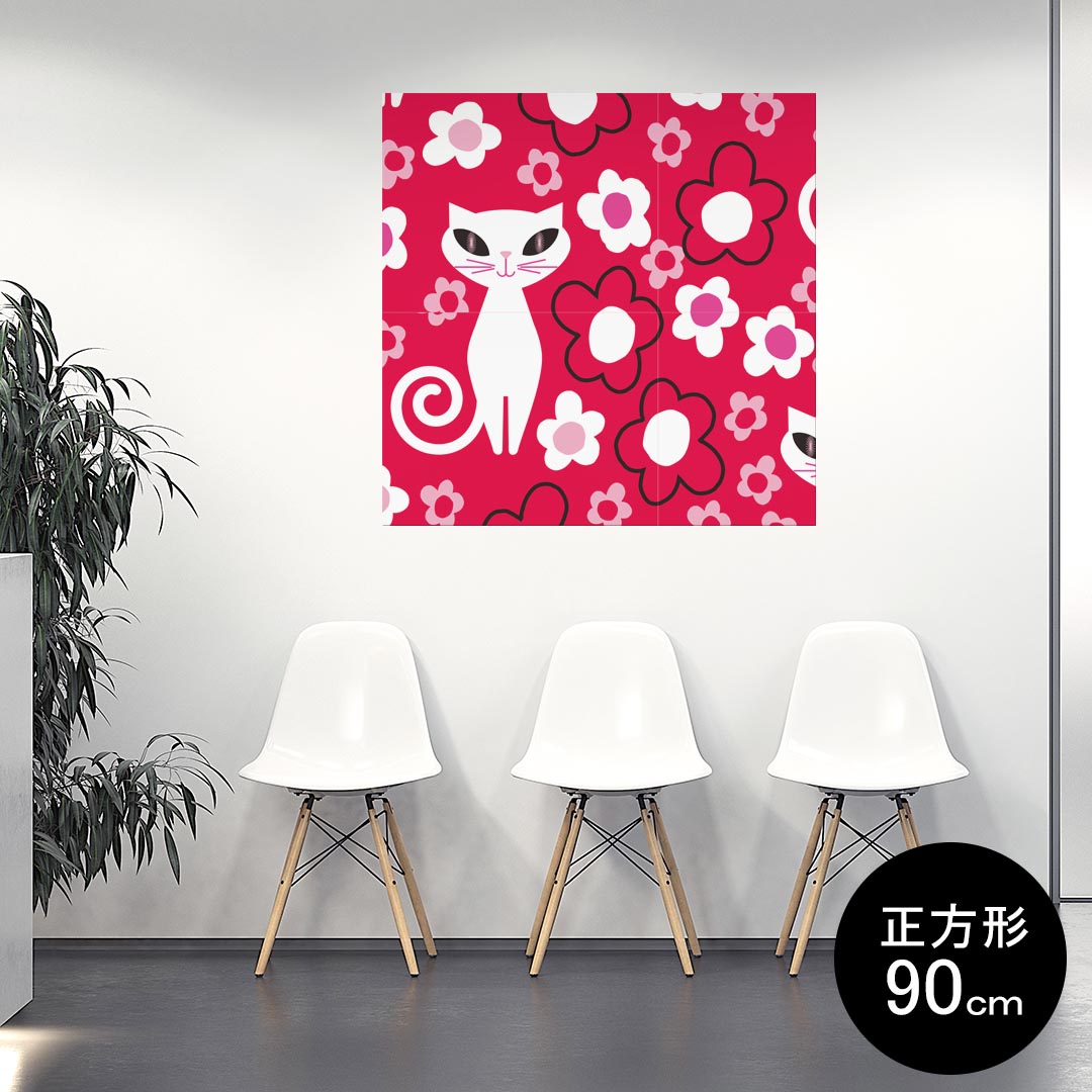 ポスター ウォールステッカー シール式ステッカー 飾り 90×90cm Lsize 正方形 壁 インテリア おしゃれ 剥がせる wall sticker poster 004458 猫 花 キャラクター
