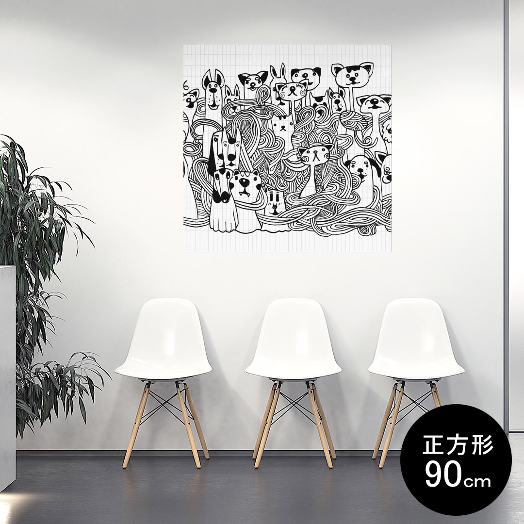 ポスター ウォールステッカー シール式ステッカー 飾り 90×90cm Lsize 正方形 壁 インテリア おしゃれ 剥がせる wall sticker poster 010274 動物 犬 猫 イラスト