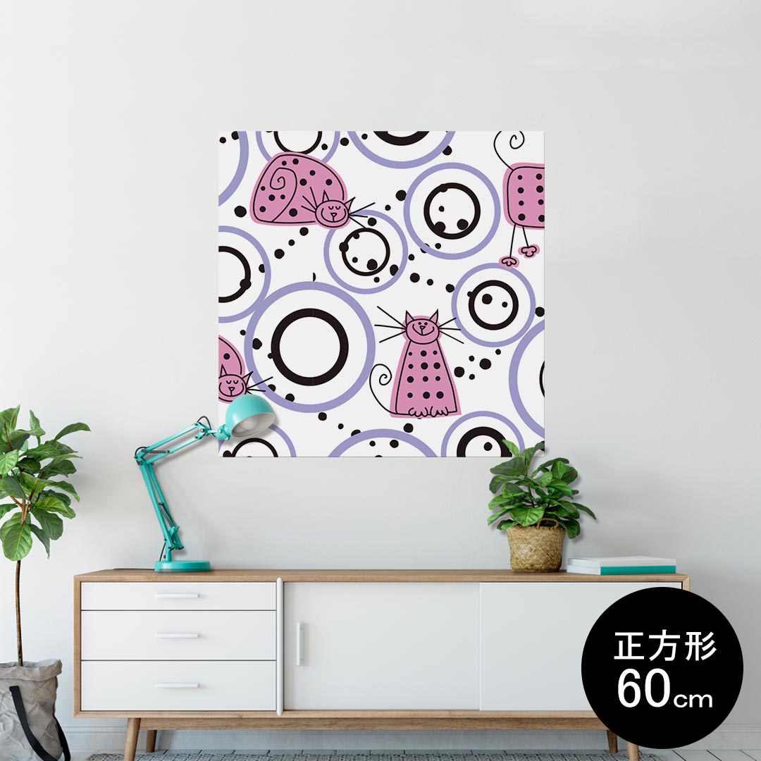 ポスター ウォールステッカー シール式ステッカー 飾り 60×60cm Msize 正方形 壁 インテリア おしゃれ 剥がせる wall sticker poster 004119 猫 動物 ピンク