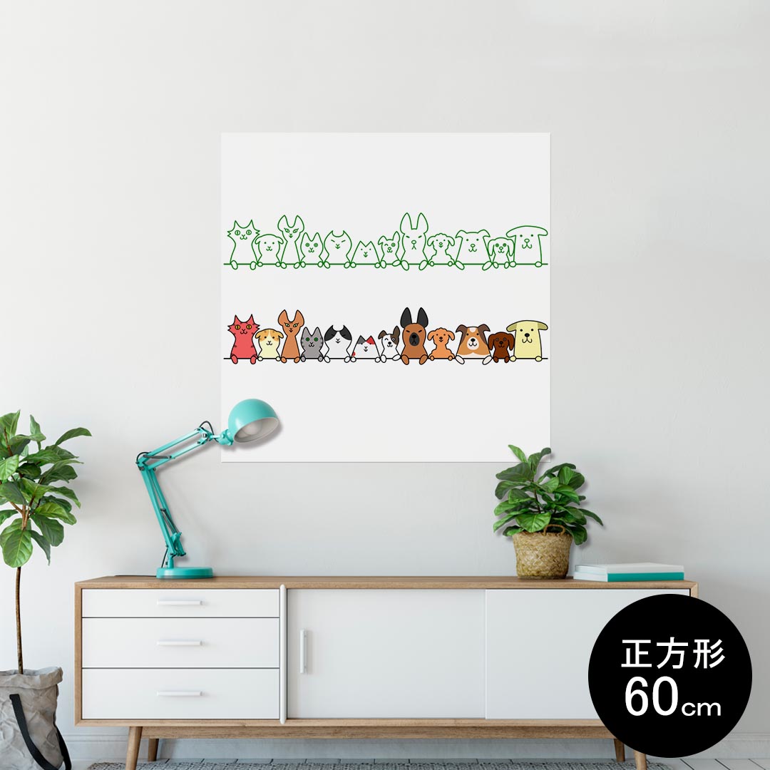 ポスター ウォールステッカー シール式ステッカー 飾り 60×60cm Msize 正方形 壁 インテリア おしゃれ 剥がせる wall sticker poster 009565 犬 猫 動物