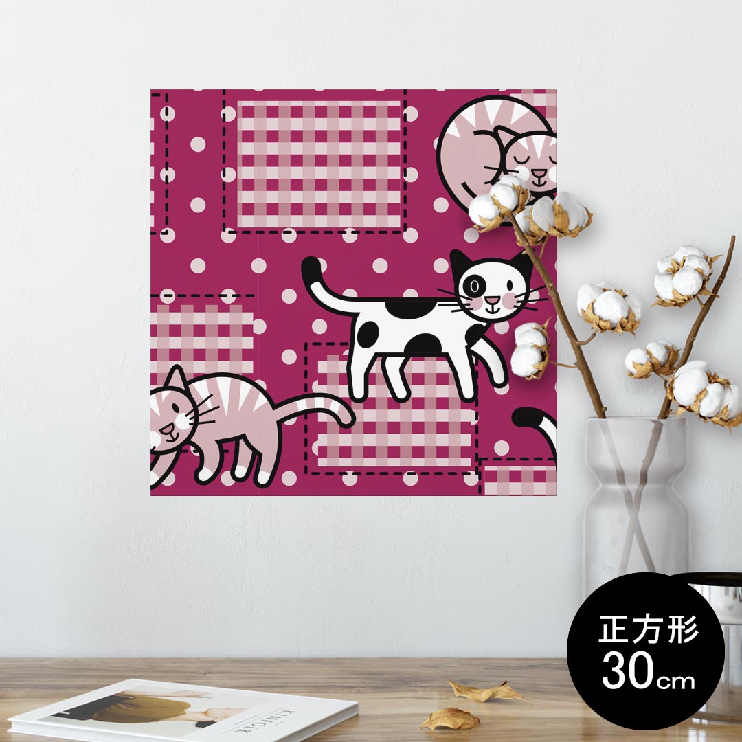 ポスター ウォールステッカー シール式ステッカー 飾り 30×30cm Ssize 正方形 壁 インテリア おしゃれ 剥がせる wall sticker poster 004232 猫 動物 水玉 チェック
